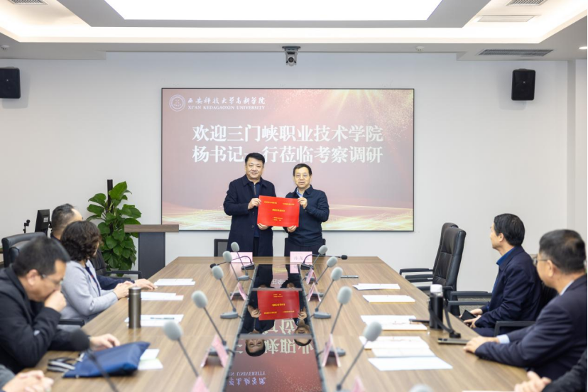 为高质量谋划“十五五”发展蓝图,打通高职教育“特色发展+产教融合”双路径,10月27日,学院党委书记杨彤带队,副院长彭博、党委委员、副院长贠莹、院长助理李启松,相关部门、学院负责人组成考察团赴西安科技大学高新学院进行专题调研,并签署合作协议。西安科技大学高新学院董事长孙龙杰携副院长王福豹、王国良、院长助理胡秋实及相关职能部门负责人全程接待了学院考察团,并举行了座谈会。