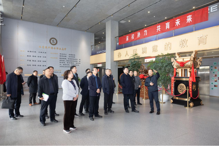 在高新学院董事长孙龙杰的陪同下,杨彤一行先后考察了南开高级中学智慧教育产品应用场景,SQA国际学院合作项目,航天意德绿色太阳能节能建筑项目,走访了环发大学生劳模训练营基地,西安市高新区产业园创业孵化基地,西咸新区产业发展项目以及西安文旅小视频拍摄基地等场所。