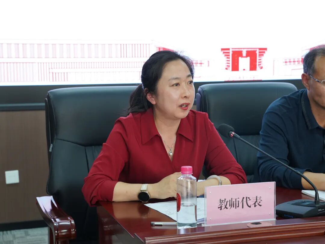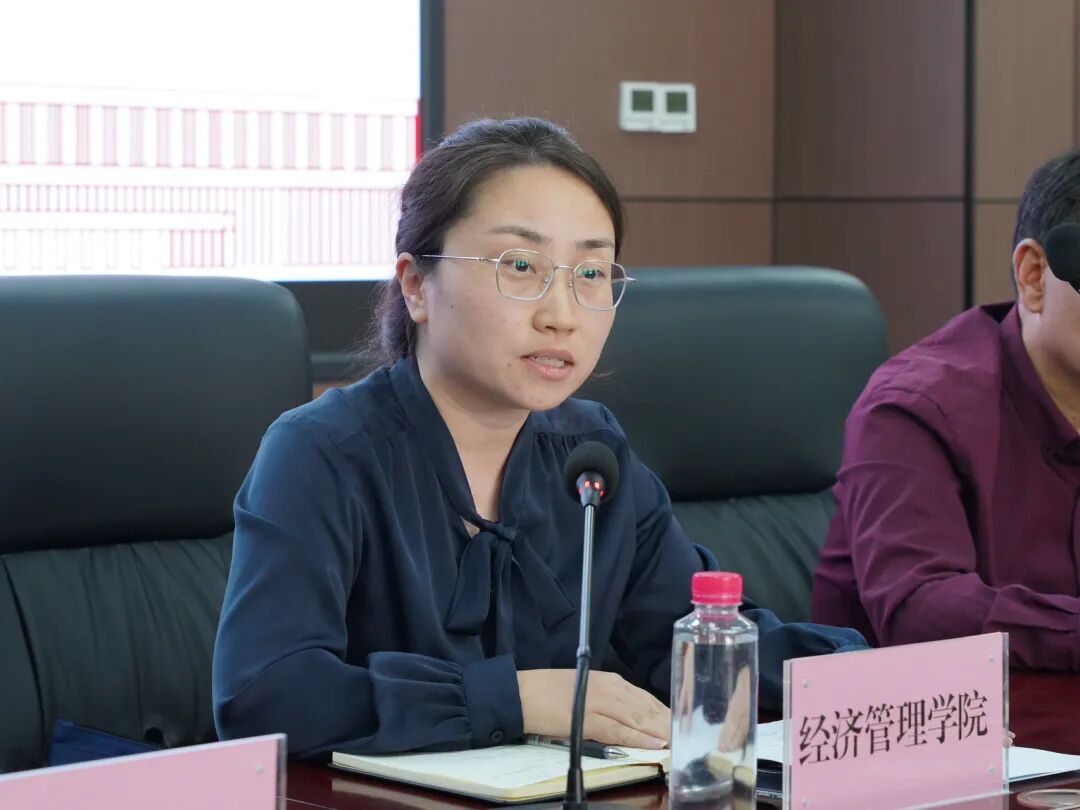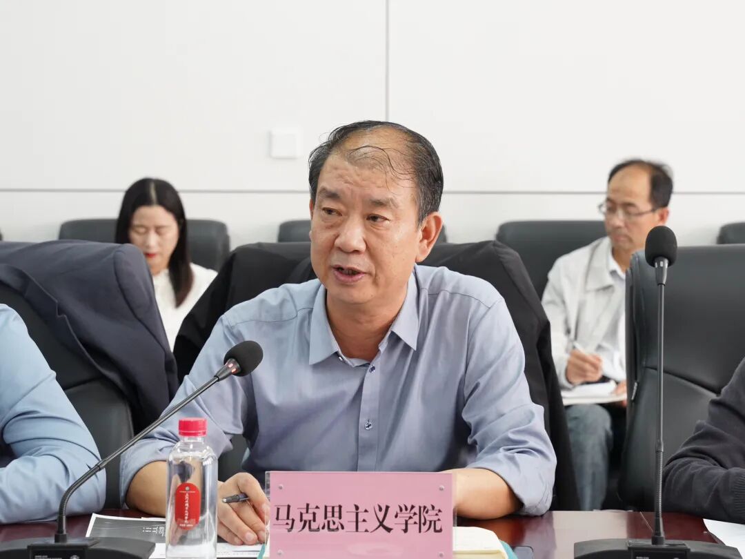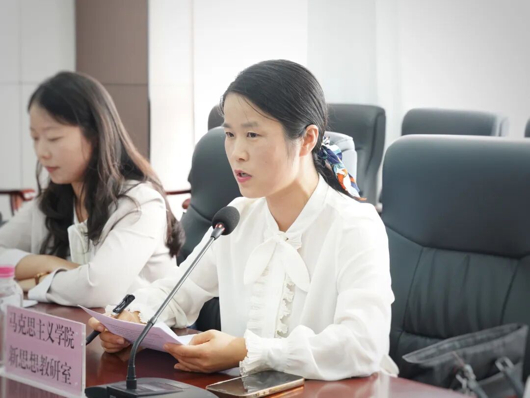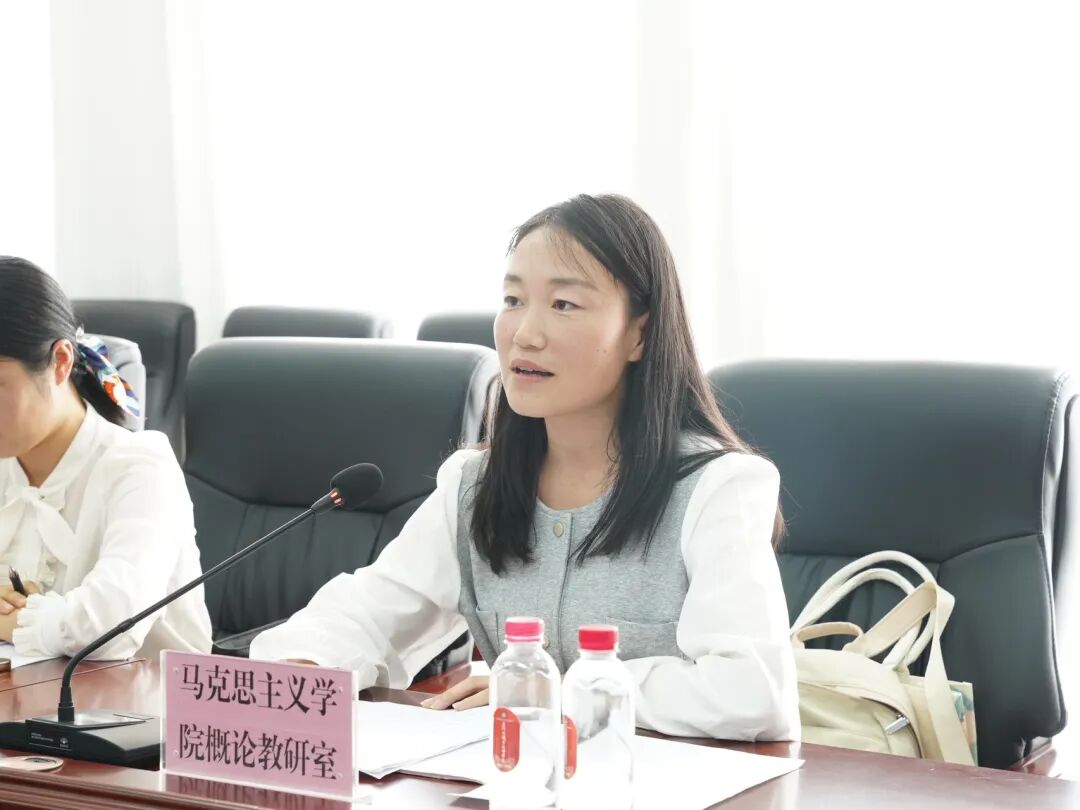 马克思主义学院院长孟昭阳、毛泽东思想和中国特色社会主义理论体系概论教研室主任陈翯、习近平新时代中国特色社会主义思想概论教研室主任赵东雪、思想道德与法治教研室主任冯欢欢、课程思政教师代表左晓虹、建筑工程学院党总支书记乔改伟、经济管理学院党总支书记孟媛、学工部部长翟艳辉先后发言,他们立足校内实际,结合教学实践,从课程设计、学情分析、技术赋能、师资建设、课程思政融合等方面分享了经验与思考,提出了具有针对性的建议。